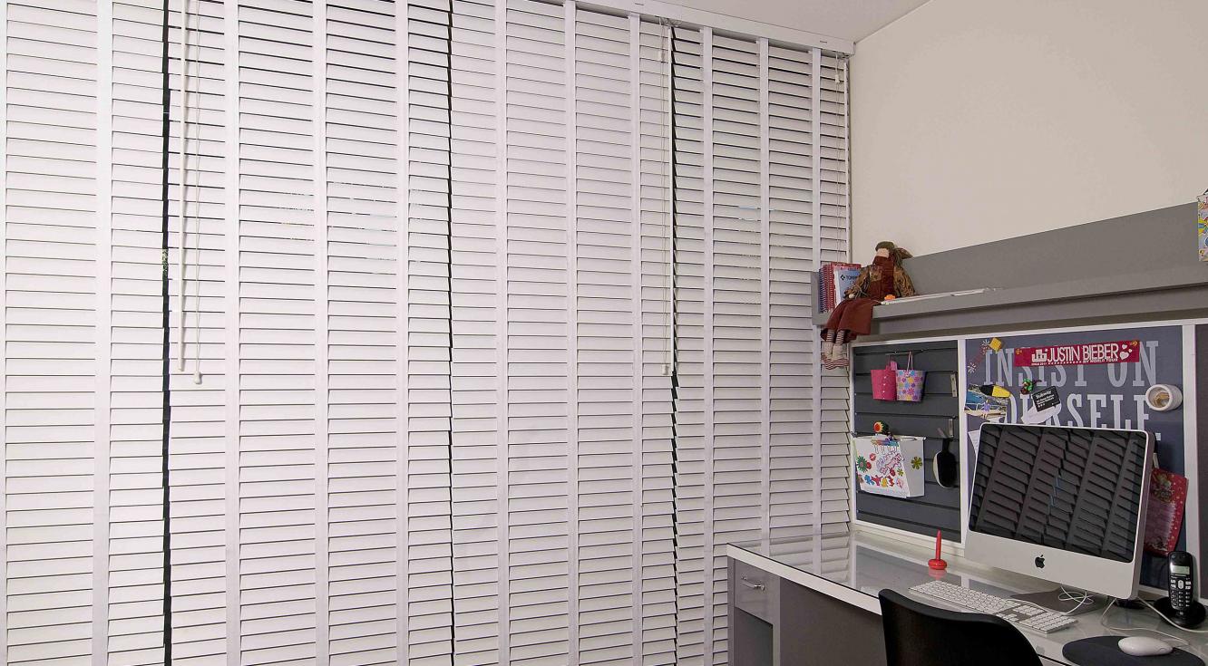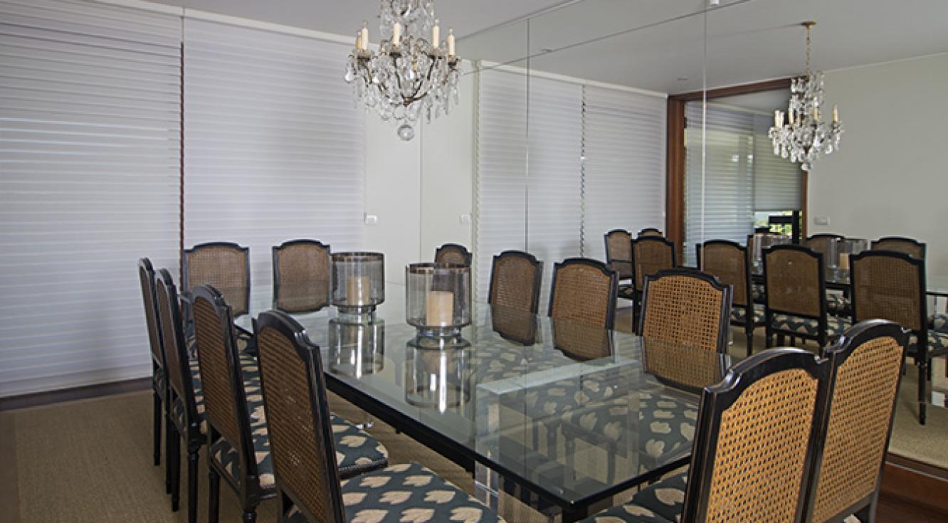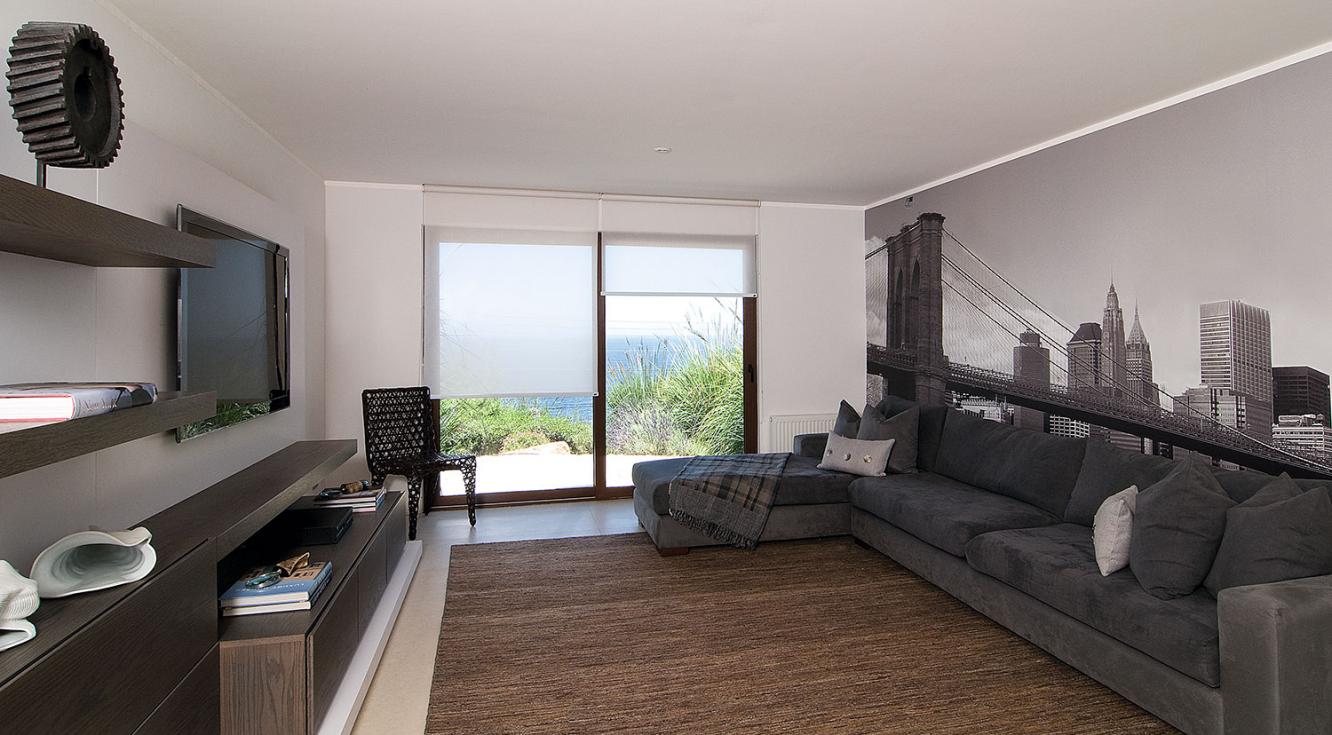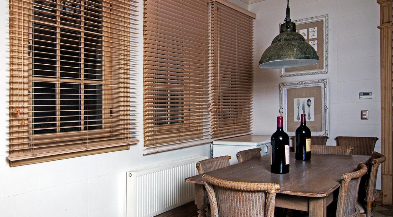 "Para nuestro proyecto usamos cortinas de madera negra gruesas, acordes con la decoración de este salón. La idea era crear un espacio sobrio y acogedor, ideal para un soltero: los colores neutros se verían resaltados por las texturas del cuero y de madera. La Persiana Country Woods® jugó un papel importante en este diseño, pues, además de contribuir con el color, permitió controlar la cantidad de luz que entraba a la habitación".